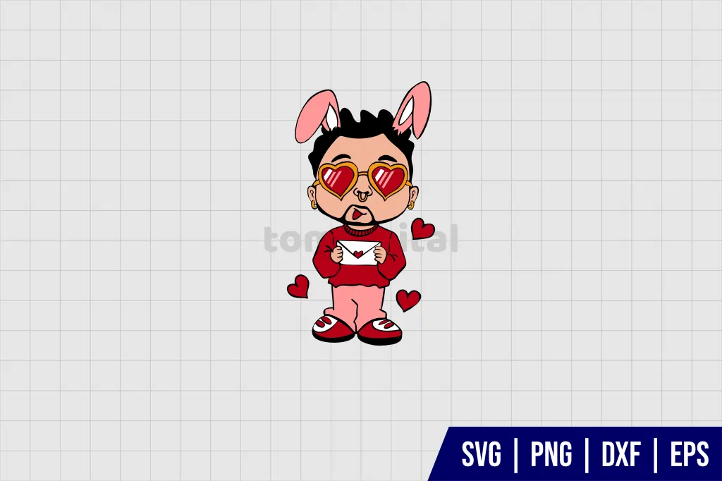 Bad Bunny Heart Love Letter SVG, Bad Bunny Valentines SVG, Valentines Day SVG, Bad Bunny SVG Cut File for cricut, silhouette cameo and more.