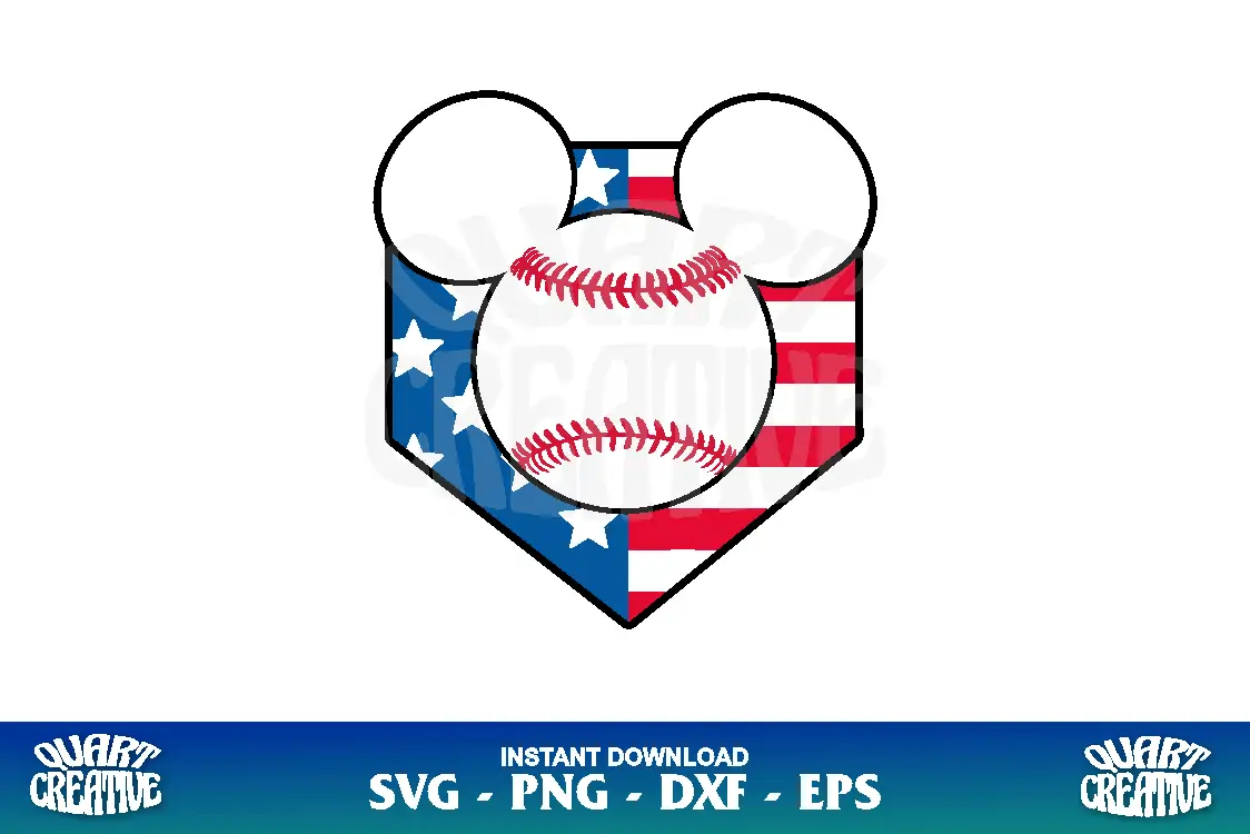 Mickey Baseball US Flag SVG, Disney Mickey ears svg cut file, instant download. Baseball Mickey SVG bundle for cricut, silhouette cameo and more.