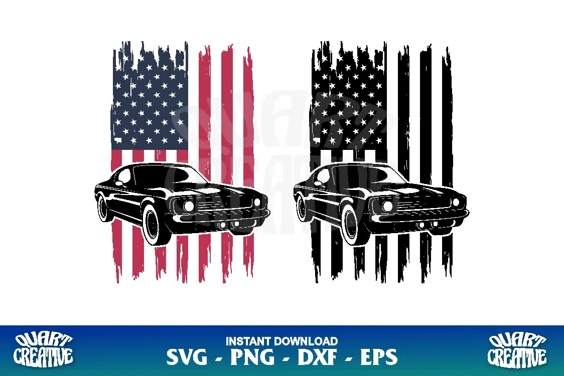 Muscle Car American Flag SVG, US muscle car svg cut file, instant download. Muscle Car SVG bundle for cricut, silhouette cameo and more.